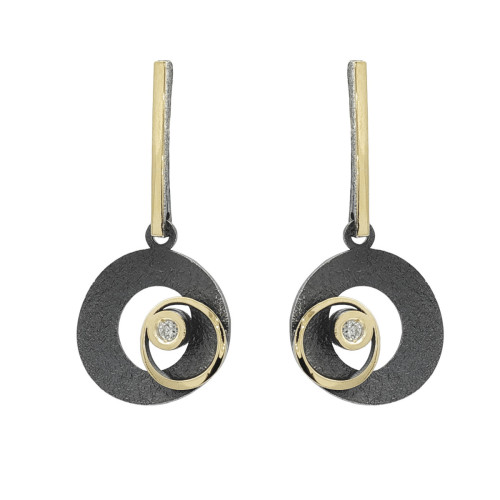 Pendientes fabricados en plata, perla keshi y diamante lab
